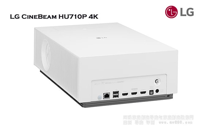 LG HU710P 4K超高清混合光源家庭影院投影機,LG CineBeam HU710P投影儀具有 2000000:1 對比度、1.6 倍變焦比和 1.3-2.08 之間的投射比。LG 聲稱該投影機也可以投出 40 英寸到 300 英寸的畫面,需要將投影儀放置在距離墻壁至少 4.3 米的位置才能創建 150 英寸的圖像。