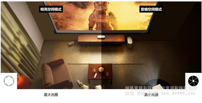 自適應對比度通過自動調整激光輸出到畫面,使影像更具深度,從而形成高對比度。使明亮場景看起來更明亮,而昏暗場景則保留深黑色和陰影的細節。