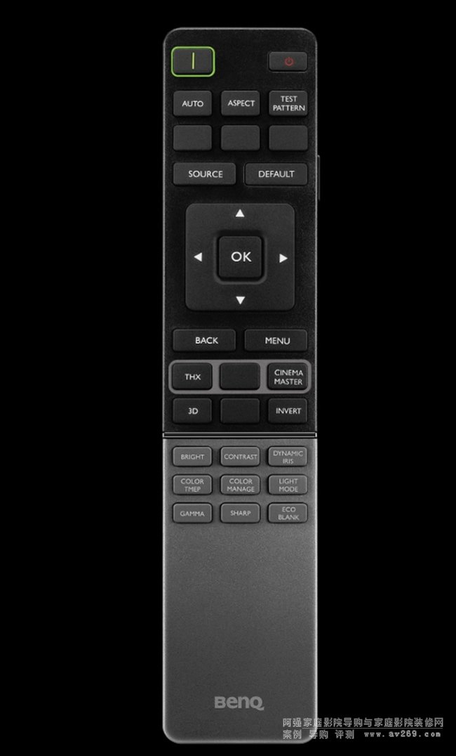 其彎曲的頂部呈現(xiàn)出獨(dú)特的蝠鲼般的輪廓,再加上其圖案鏡片環(huán),意味著它在嚴(yán)肅的家庭影院室中看起來就像在家里一樣。BenQ 對(duì)細(xì)節(jié)的關(guān)注在遙控器上得以延續(xù)。困擾以前型號(hào)的海綿狀按鈕已經(jīng)一去不復(fù)返了。W5800 的大按鈕提供令人放心的點(diǎn)擊效果。它采用雙色木炭制成,兩個(gè)飾面之間有一個(gè)小的鍍鉻邊框,與它隨附的投影儀一樣吸引人。
