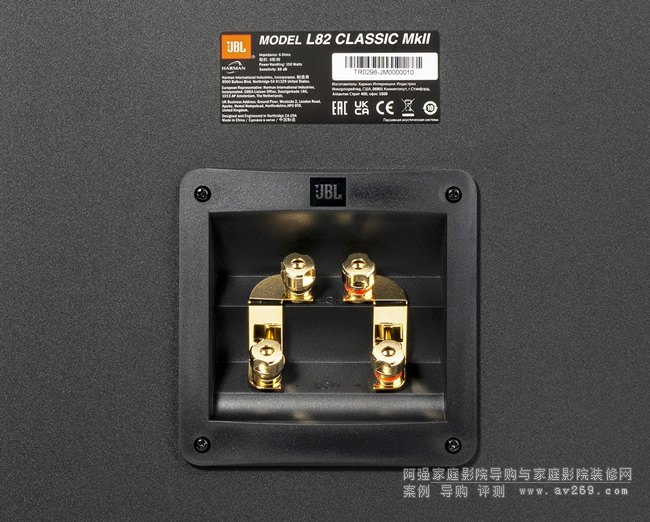 L82 Classic MkII 的另一個新功能是 JBL 的 25 毫米 JT025TI2-4 鈦圓頂高音揚(yáng)聲器,設(shè)置在波導(dǎo)中。從歷史上看,發(fā)燒友們在八十年代后期對(當(dāng)時)新奇的鈦合金高音揚(yáng)聲器感到驚訝——所以它肯定不是一項新技術(shù)。到九十年代中期,許多制造商開始從金屬圓頂轉(zhuǎn)向織物圓頂,但 JBL 正在這里耕耘自己的溝壑。這種類型并不以其流暢性而聞名,但總是能提供快速、定義明確的聲音。如果它的定義有點太明確了,該公司已經(jīng)深思熟慮地安裝了“L-pad”衰減器,這樣你就可以把它調(diào)低。在背面,您可以獲得可雙線鍍金揚(yáng)聲器接線柱,這是對僅單線的Mk I版本的改變。