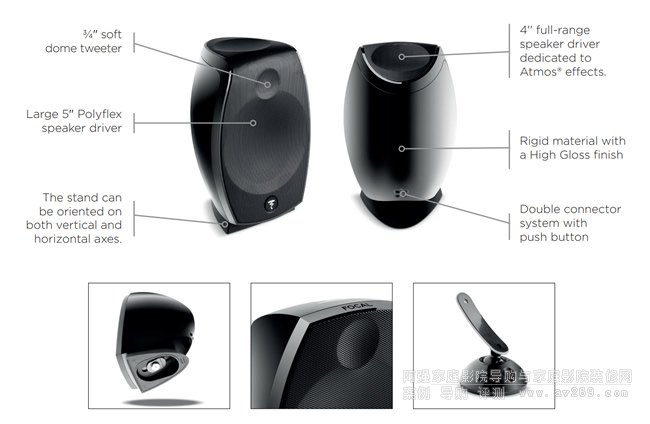 這個Sib Evo Dolby Atmos® 揚聲器配備了一個5英寸Polyflex低音炮、一個‘¾’ 綢面穹頂高音喇叭,并且在頂部還有一個3英寸全系列Polyflex音響驅動器,以便專門提供Atmos®效果。它在設計時,比Sib Evo衛星在后面提供了更大的體積,以便提供更高的擴展頻率響應。Focal還想為已經配備Sib揚聲器的客戶,提供一個能夠完美適合的升級解決方案: 兩個Dolby Atmos®揚聲器可以添加到現有的Sib系統中,體驗最先進的家庭影院系統所提供的感覺。
