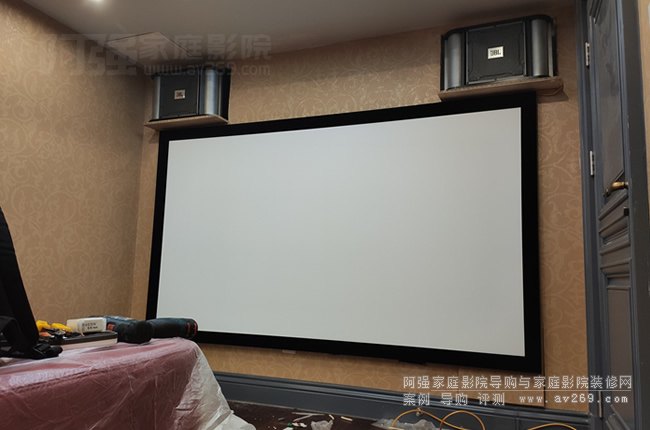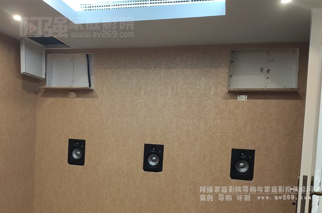 家庭影院音箱和OK音箱全部安裝完畢,整體感覺(jué)只能說(shuō)還不錯(cuò),把透聲畫(huà)框幕安裝到位即可轉(zhuǎn)移到后方陣地了。
