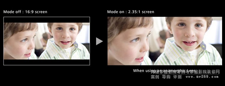 通過(guò)將投影儀與第三方變形鏡頭相結(jié)合,可以享受寬電影的 2.35:1 縱橫比,以創(chuàng)建動(dòng)態(tài)的畫面再現(xiàn),就像在電影院中看到的那樣。