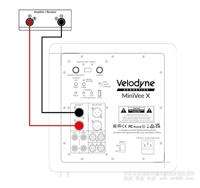 輸出 非平衡立體聲/LFE RCA 輸出,輕松菊花鏈,平衡立體聲/LFE XLR 輸出,輕松菊花鏈,3,5 毫米迷你插孔觸發(fā)輸出,延遲 5 秒