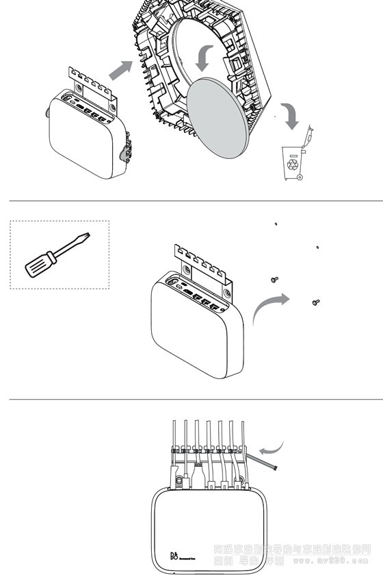 在將任何線纜或設備連接到 Beoconnect Core 之前,請確保所有設備均已關閉并斷開電源連接。在將任何線纜或設備連接到 Beoconnect Core 之前,請確保所有設備均已關閉并斷開電源連接。