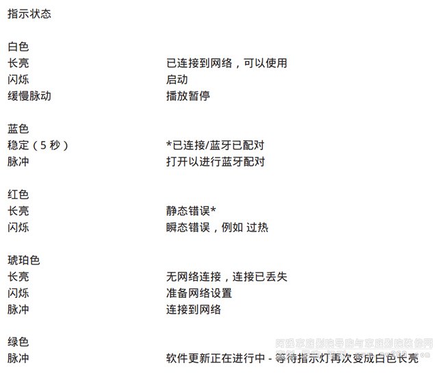 指示燈位于 Beoconnect Core 的正面,顯示產品的狀態: