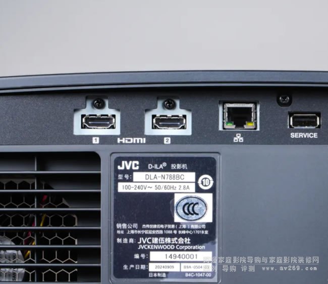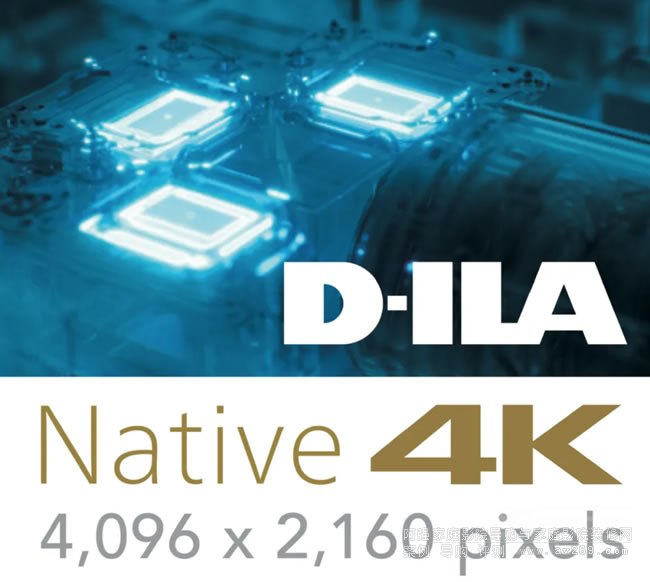 在機(jī)身后上方清楚指出顯示芯片類型為JVC標(biāo)志性的D-ILA面板