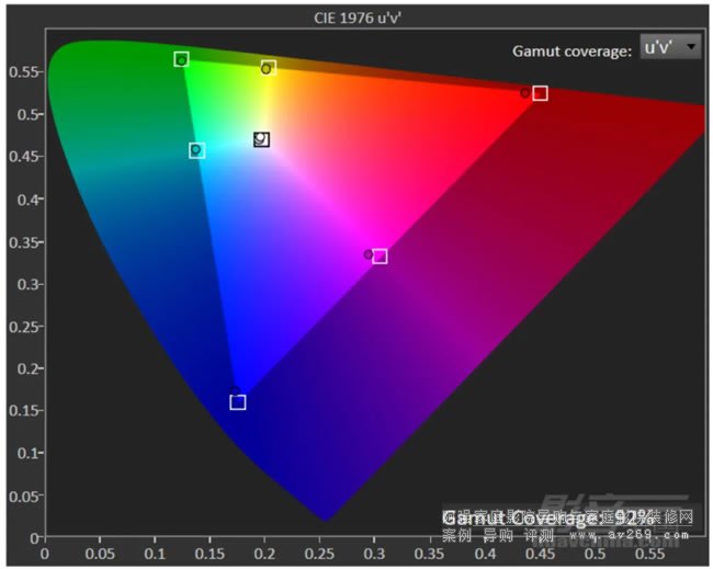 制片人預(yù)設(shè)模式的色域覆蓋范圍為92.3%BT.709,有著不錯(cuò)的色準(zhǔn),但亮度偏低