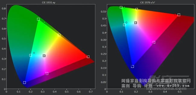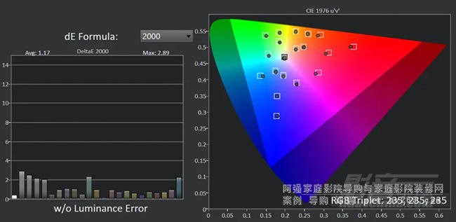 BT.2020預(yù)設(shè)色彩配置下,在ColorChecker色準(zhǔn)測(cè)試中,平均誤差值dE2000僅為1.17,最大誤差值dE2000也只有2.89,低于人眼可判別的誤差范圍