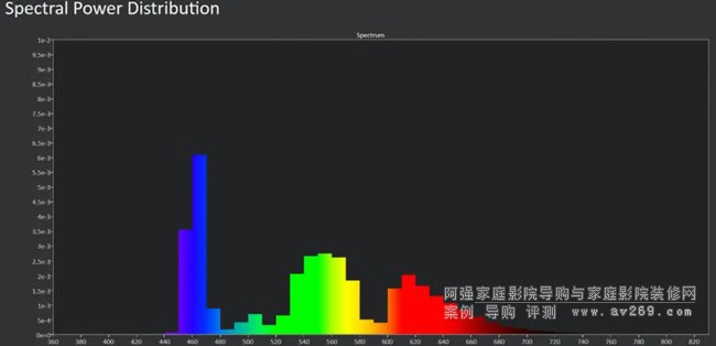 至于影音愛好者都十分關(guān)心的HDR預(yù)設(shè)模式色彩準(zhǔn)度的測(cè)試方面,主要觀察在Frame Adapt HDR圖像預(yù)設(shè)模式下的色域覆蓋范圍與色準(zhǔn)表現(xiàn),并加入專門的光譜能量分析,探索DLA-N788內(nèi)置的BLU-Escent激光光源技術(shù)特點(diǎn)。測(cè)試環(huán)節(jié),同樣采用的是Portrait Displays Calman 2024專業(yè)色彩測(cè)量軟件、4K HDR視頻信號(hào)發(fā)生器以及分光型色度計(jì),搭配OS 150英寸2.02增益BU301玻珠幕,現(xiàn)場(chǎng)采取關(guān)燈加上一定程度的遮光處理,以最大限度確保測(cè)試結(jié)果的準(zhǔn)確性。測(cè)試前,針對(duì)白平衡進(jìn)行了手動(dòng)微調(diào),以撇除屏幕因素與環(huán)境光線的影響。相比市場(chǎng)定位更高的DLA-N888擁有BT.2020(寬)與BT.2020(普通)兩種色彩配置模式,DLA-N788只有一種BT.2020模式,也就是并不具備廣色域?yàn)V鏡模式。而從實(shí)際測(cè)量結(jié)果來看,色域覆蓋范圍方面確實(shí)更加接近于DLA-N888內(nèi)置的BT.2020(普通)模式,色域覆蓋范圍約在90%左右 DCI-P3。此時(shí),畫面白色畫面中心測(cè)試亮度接近于40fL,已經(jīng)達(dá)到ISF關(guān)于HDR內(nèi)容觀看亮度至少30fL的推薦要求。在色準(zhǔn)表現(xiàn)上,面對(duì)Portrait Displays Calman 2024軟件中的Colorcheker色準(zhǔn)測(cè)試項(xiàng)目,平均誤差值dE2000僅為1.17,低于人眼可判別的誤差范圍,相當(dāng)不錯(cuò)。至于內(nèi)置的新一代高能效BLU-Escent激光光源的技術(shù)特點(diǎn),整體表現(xiàn)與DLA-N888相近,主要的光譜能量集中在藍(lán)光,展現(xiàn)出單色激光熒光光源的技術(shù)特點(diǎn)。