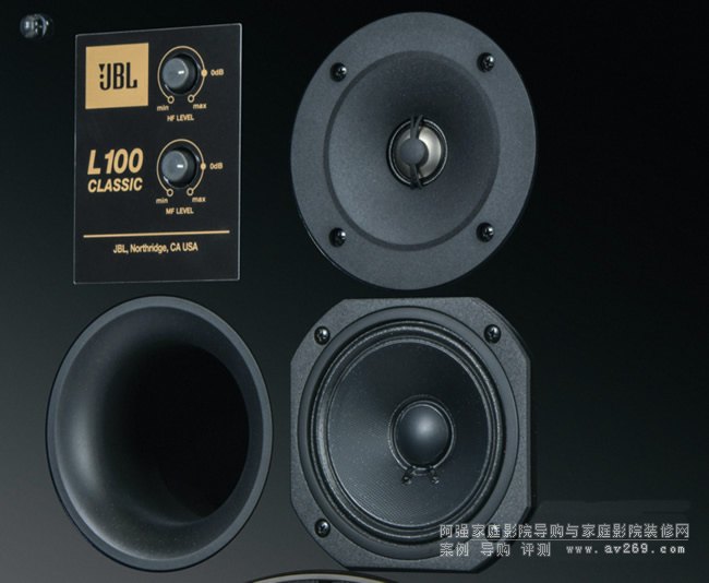 與初代JBL L100相比,目前的JBL L100 CLASSIC黑金限量版在單元和分頻器方面進行了全面升級。JBL L100 CLASSIC黑金限量版配備了一個1英寸鈦膜球頂高音單元JT025Ti1,鈦材質的高剛性和輕質量特性,使其在高頻延伸和瞬態響應方面表現出色。高音單元外圍還加入了一圈淺號角設計,既提高了聲音的傳播效率,又讓高頻與中頻的銜接更加順滑自然。