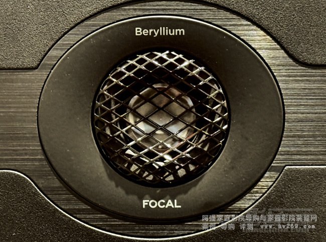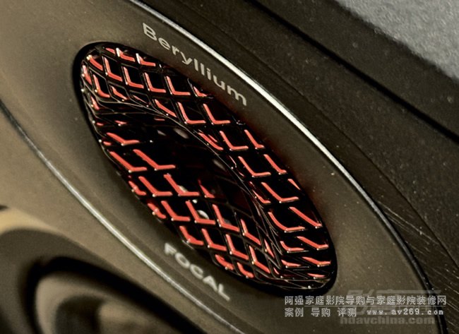 在音箱部分,DIVA Utopia就是使用純鈹“M”型振膜高音單元,這個鈹高音單元與FOCAL系列的其他家用HIFI音箱所使用的鈹高音單元不太一樣。純鈹“M”型振膜高音單元的振膜多了一道反折,然后與懸邊連接,懸邊部分還使用了FOCAL的TMD技術,可以降低失真。這款鈹高音單元具備更厲害的高頻延伸性能,它在DIVA Utopia上面的高頻上限應用到40kHz。高頻延伸出色,意味著可以重放出細致順滑的高音。在試聽時,我發現DIVA Utopia的高音網罩有一個很特別的設計,網罩前面是黑色,內側兩邊是紅色。它的靈感來自“紅黑太極圖”。當我從不同角度觀察時就會看到紅色和黑色不斷交替變化的效果,視覺效果非常鮮明。