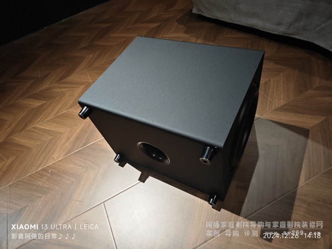 其通風導向口位于機柜底面的中央,這對于室內均勻的聲激勵是有利的。反射端口在兩側呈圓弧形,以避免氣流噪聲。與直接作用于驅動器的力相比,反射端口中的空氣流動當然是無害的;因此,長沖程低音揚聲器的所有組件都已仔細設計,以承受巨大的機械應力。出于這個原因,沉重的雙通風籃由硬化鋼制成,而蜘蛛則由棉和聚合物的材料混合物制成,具有有利的質量和穩定性比。對于喇叭懸邊,工程師使用丁腈橡膠,作為合成材料,它比天然橡膠更耐用。驅動器的振膜,名義直徑為26.5厘米,由纖維素漿制成,以提高聲音質量,并用特殊的硬質涂層密封。在驅動側,兩個大型鐵氧體磁鐵和一個50毫米的音圈,由四層高純度銅制成,使大振膜移動。阿強家庭影院