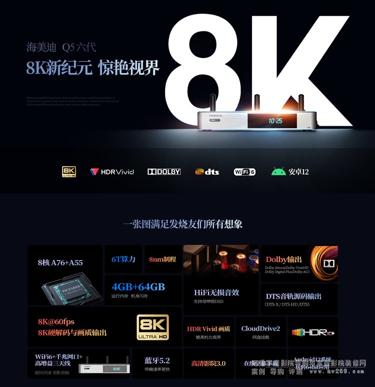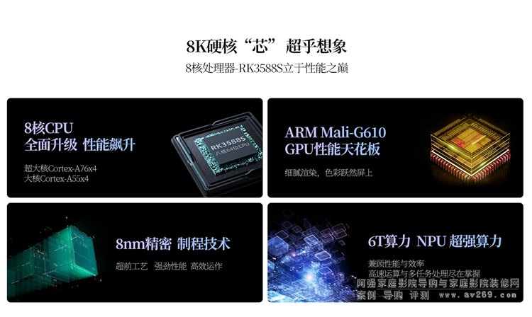 海美迪Q5六代8K藍(lán)光播放器順應(yīng)時(shí)代潮流,是迎合用戶高品質(zhì)觀影需求的又一最新力作。而作為一臺(tái)專業(yè)的藍(lán)光播放器,海美迪Q5六代搭載的是非常強(qiáng)悍的瑞芯微 RK3588S 處理器,這款處理器作為瑞芯微旗下高端AIoT芯片,它采用了 8nm LP 制程,搭載 八 核 64位 CPU,主頻達(dá)到2.4GHz。