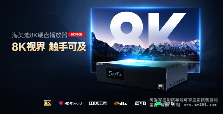 海美迪HD950B 8K超高清UHD 4K原盤5.1 7.1聲道家庭影院發燒級原盤ISO藍光播放機。