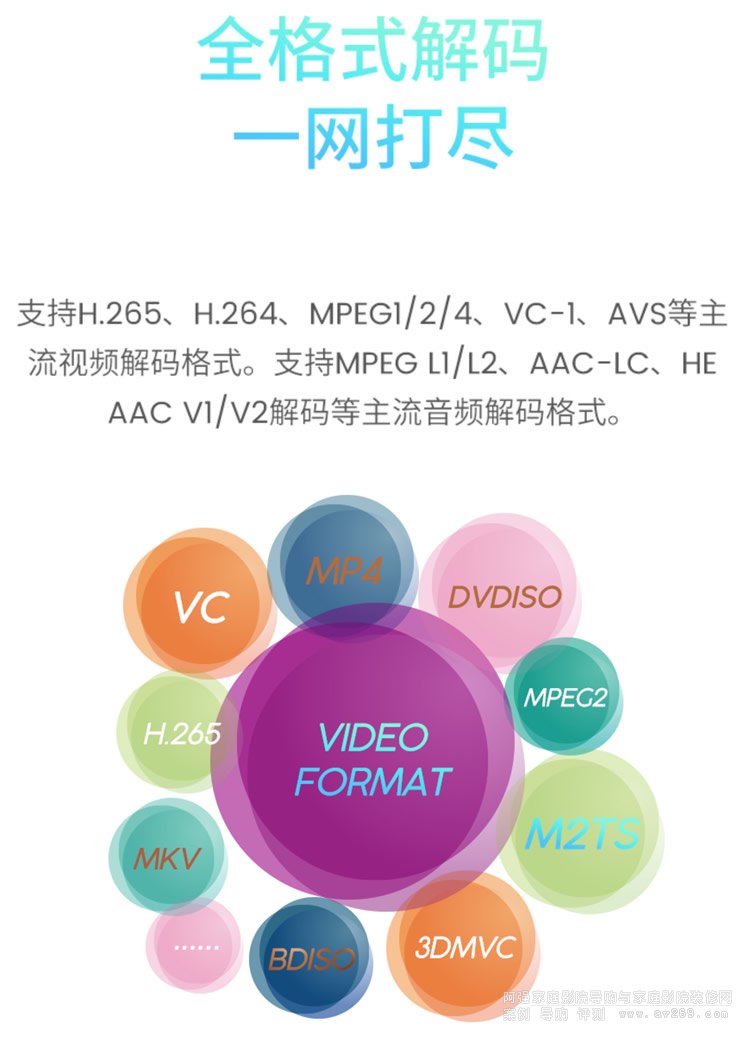處理器 Hi3798M V200 GPU ARM Mali-450 內存 2GB DDR4 閃存 16GB 高速閃存 認證 CQC 認證 操作系統 通過Google CTS認證的安卓7.0系統;輸出分辨率 最高可達4K(3840*2160 @60幀/秒);視頻解碼格式: H.265、H.264、MPEG1/2/4、VC-1、AVS 視頻文件格式: 支持TS、MKV、FLV、MOV、MP4、ISO;音頻解碼格式: MPEG L1/L2 AAC-LC、HE AAC V1/V2解碼 APE/FLAC/Ogg/AMR-NB/WB解碼 G.711(u/a)音頻解碼 音頻文件格式: MP3、APE、FlAC、AAC、Ogg;圖片格式 支持JPG、BMP、GIF、PNG等文件格式 菜單語言 簡體中文、繁體中文、英文以及更多種的其他語言 有線功能 千兆網口 數據傳輸率:10/100/1000Mbps 無線功能 內置無線網卡,支持2.4GHz 802.11b/g/n;視頻接口 1高清輸出接口(鍍金) 1×CVBS復合視頻接口(鍍金) 音頻接口 模擬左右聲道音頻接口 1×SPDIF數字光纖音頻接口 1×COAXIAL同軸音頻接口(鍍金) 其它接口 2×標準USB 2.0接口 1×內置SATA硬盤接口 1×RS232接口(鍍金) 1×IR_in 接口 1x天線接口 1×電源接口;遙控器 33鍵紅外學習型遙控器 電源電壓 輸入:100-240V 50/60Hz 輸出:12V,3A 外形設計 材質:金屬外殼 顏色:黑色 家電式LED顯示屏 船型開關按鍵 尺寸 324*219*80mm(不帶腳墊高度);產品尺寸:324*222*80mm