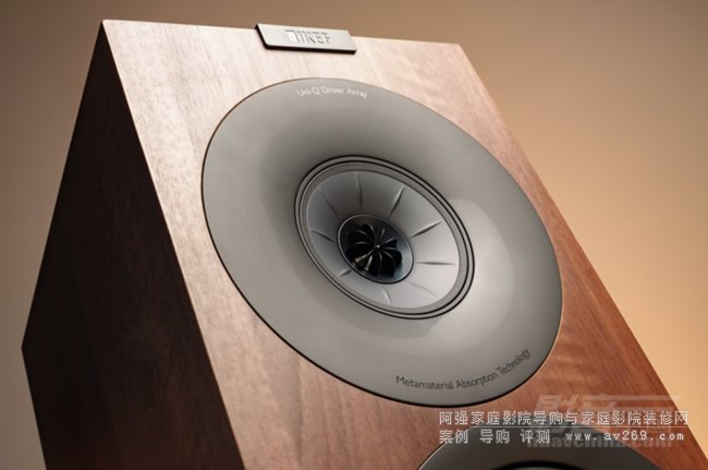 可以發現,大多數緊湊型書架音箱通常采用2分頻或者2.5分頻設計,但3分頻在這種體積的音箱中并不多見。當然,大型書架箱由于箱體空間充裕,采用3分頻設計并不罕見。然而,對于緊湊型書架箱來說,箱體空間有限,前障板面積狹小,無法容納3只獨立的單元,這使得2路2單元成為主流設計方案。如果想在緊湊箱體內實現三分頻設計,同軸單元無疑是最優解。而KEF專利的Uni-Q便是同軸單元中的佼佼者。