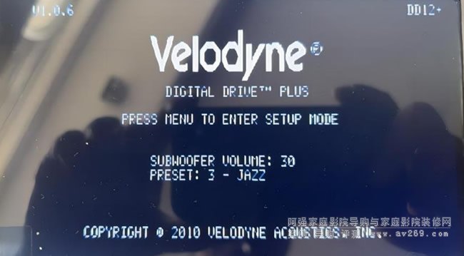 開機后會通過小屏幕看到主界面,默認模式為PRESET:3 -JAZZ模式,默認音量SUBWOOFERVOLUME:30