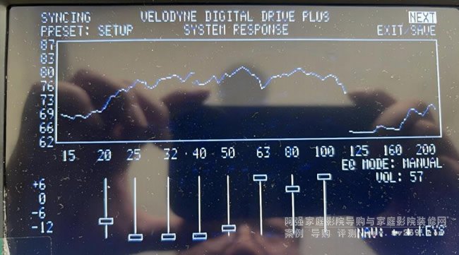 通過播放器播放數字掃頻文件,點擊低音炮前面板最右邊的AUTO EQ或遙控器上的EQ,開始自動掃頻校準房間曲線,此時釋放雙手,曲線會根據房間環境及音響系統自動修正削峰填谷,直至低音炮同步屏幕自動重啟,調試結束,當退出或重啟時會有兩聲微響,這是正常的現象,在退出設定前可先將放大器的音量調小。