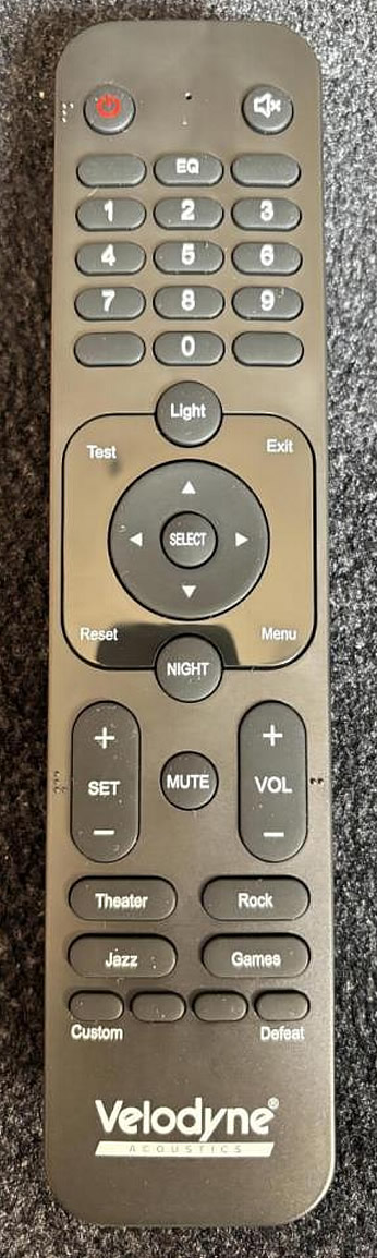 ://www.velodyneacoustics.com/en/manuals-and-documents/中下載或找當地區域產品經理獲取),帶兩節七號電池的遙控器,低音炮通電開機。