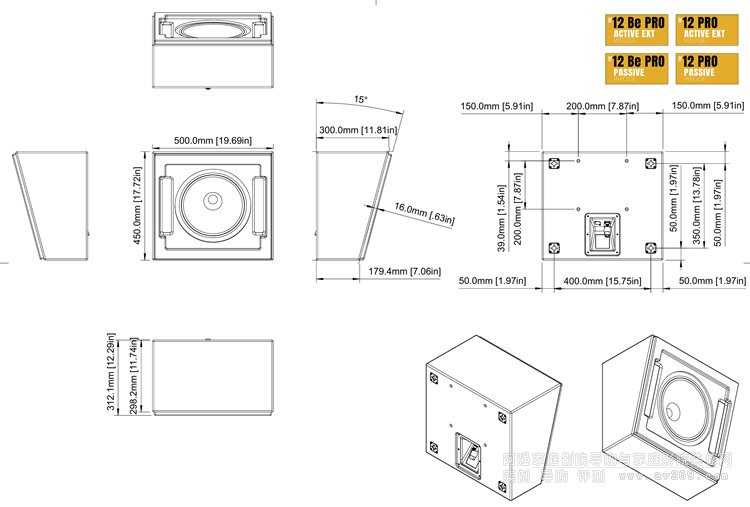 該型號的設計目標是提供一個預傾斜版本的 The12 PRO ACTIVE EXT,可以安裝在必須調(diào)整揚聲器角度的多個位置。這些位置包括但不限于前置寬揚聲器、Atmos和 DTS 頂置前后揚聲器、前置或后置高環(huán)繞揚聲器、側(cè)環(huán)繞揚聲器等。