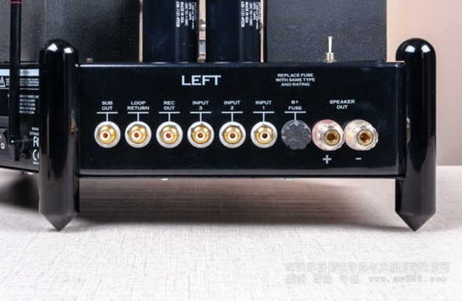 STINGRAY II其中一個聲道的輸入輸出端子包括3路輸入、1路錄音輸出、1路環(huán)路輸出和1路超低音信號輸出。最右側是喇叭端子。