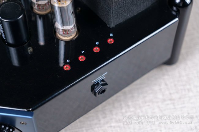 紅色標記的數(shù)字標識對應于每只電子管的偏壓測量端口,只需將萬用表的紅色探針接到相應的紅色端口,黑色探針接到地線端口,就可以測量出每只EL84電子管的偏壓,然后分別調整直至達到Manley Labs要求的250mV。另外,STINGRAY II還提供了一個6.35mm規(guī)格的耳機接口。