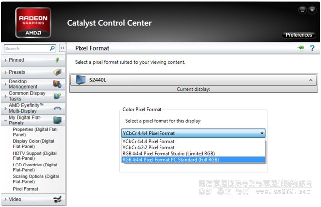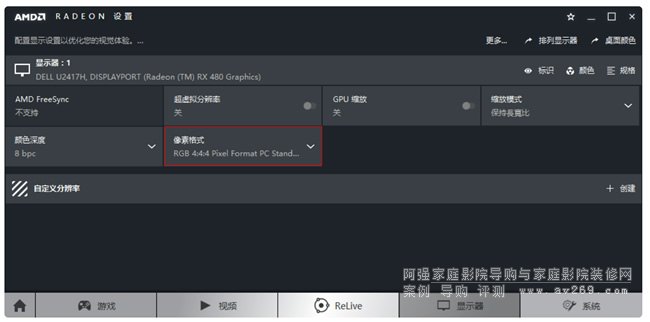 AMD 顯卡:新版設置界面,選擇 Full RGB: