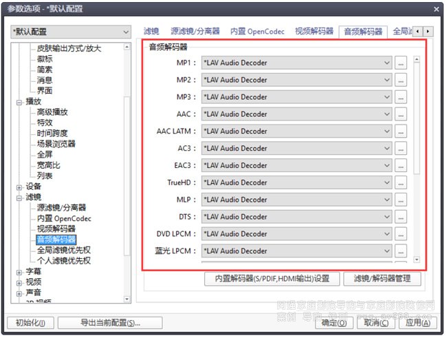 (1)視頻解碼器 LAV Video Decoder 設置。LAV 的設置分為兩套方案,A 方案應搭配 madVR 使用,B 方案搭配默認的 EVR(CP) 使用。