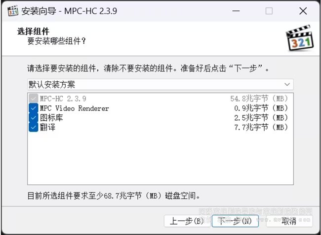 在 選擇組件 這一步請全部勾選,或者至少勾選 MPC Video Renderer <版本號>,這樣就把 MPCVR 也順帶安裝好了(同時請?zhí)^本文的 安裝 MPC Video Renderer 部分)。
