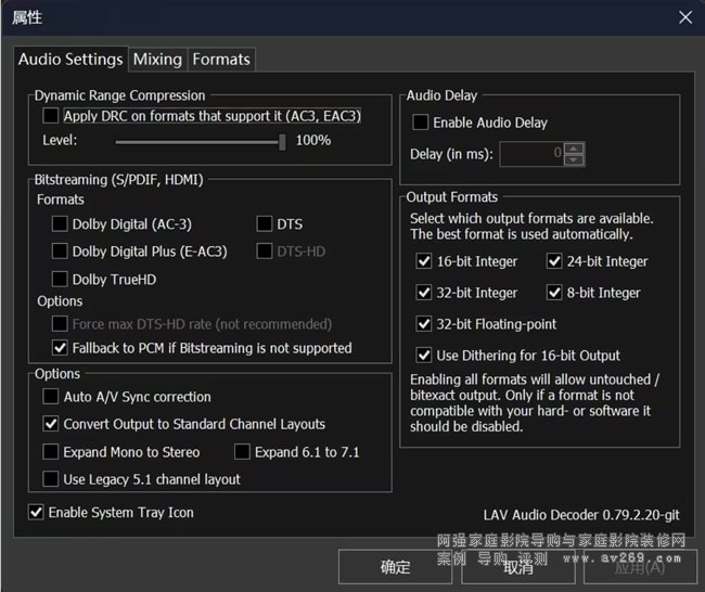 如果不清楚自己的設備支持的格式,可以在 Bitstreaming(S/PDIF,HDMI) -> Options -> 勾選 Fallback to PCM if Bitstreaming is not supported,該選項的意思是不支持直通的格式交給LAV解碼。