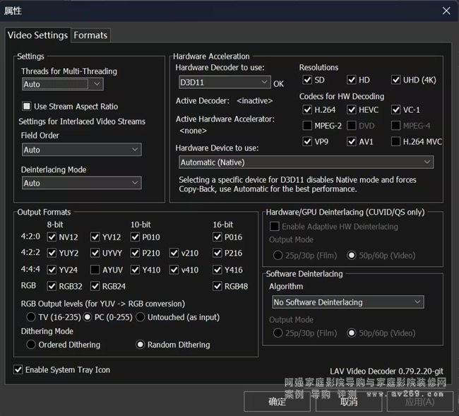 內(nèi)部濾鏡 -> 內(nèi)部 LAV Filters 設置 -> 視頻解碼器