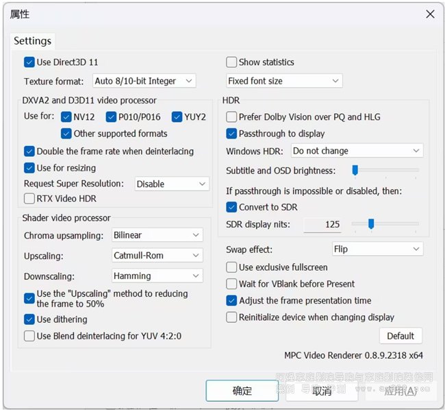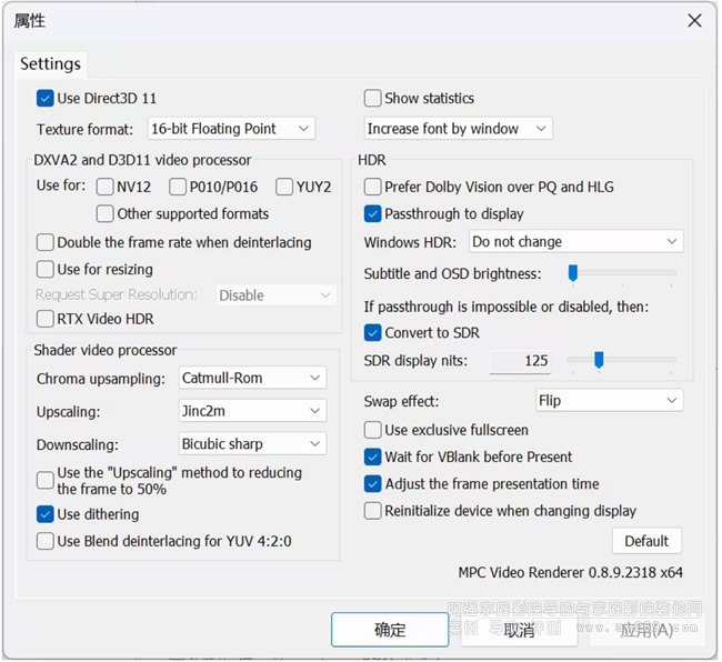 我不會班門弄斧地詳細講解各個選項的具體作用,如果需要了解,請看 MPC Video Renderer 的官方說明(內(nèi)容是俄語,請善用翻譯):https://mpc-be.org/forum/index.php?topic=381