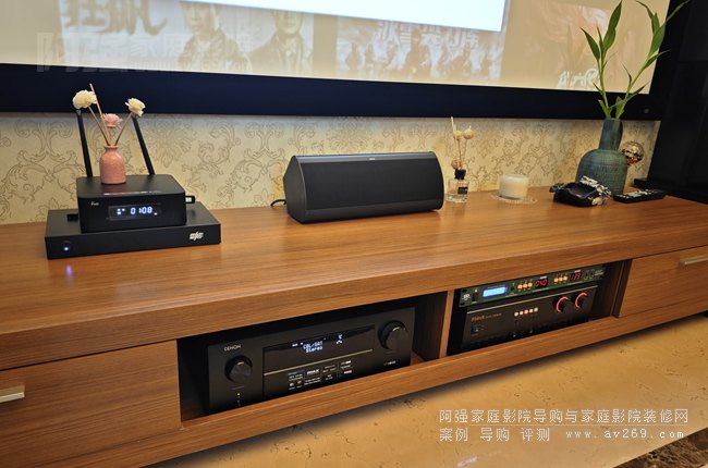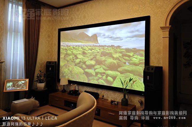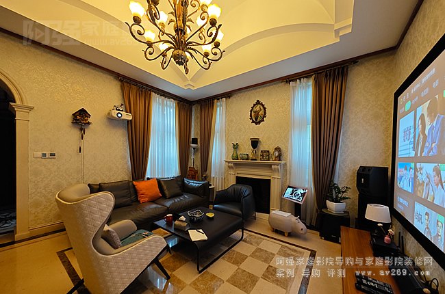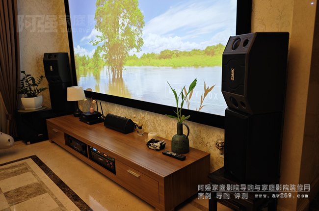 本案在精裝修客廳影院里面使用的大部分影音設備為現成的,阿強根據整套系統進行了部分升級,主要是視頻系統加點歌機,麥克風等,影院主要是超重低音炮和環繞音箱等,視頻投影機為了布線美觀采用壁掛安裝不是完全居中安裝的,通過愛普生大范圍鏡頭位移功能使用畫面可以投滿整個屏幕,整案功能和布置呈現出來的效果超出客人的期許,后續對老舊設備將慢慢升級中...