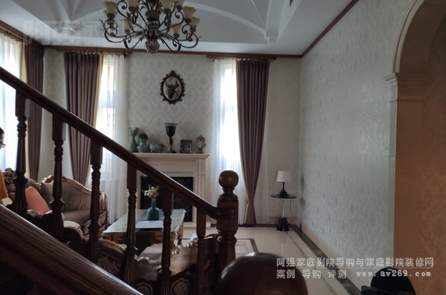 這是原始空間,歐式風格裝修沒有提前布置任何影音線材,阿強需要在現有空間把家庭影院和卡拉OK系統融入進去,盡量讓現場簡潔規整,線材走線需要因地制宜,主要通過踢腳線和窗簾遮擋部分。