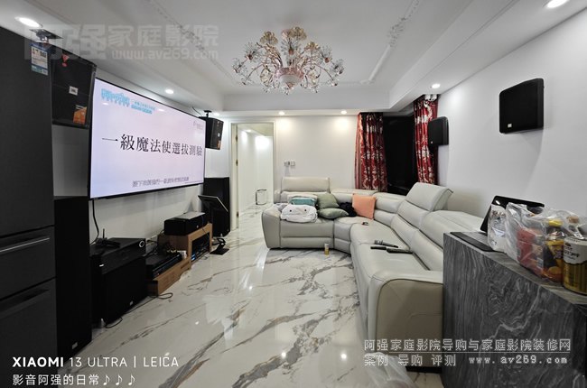 換個(gè)正面角度來(lái)看一下,整個(gè)電視墻寬度不到3米,最終規(guī)置后還是比較舒服的,最重要的是客人上下樓有兩套房,這套一居室主要用于娛樂(lè)休閑使用,平時(shí)和朋友喝個(gè)茶唱個(gè)歌不會(huì)干擾到家人日常生活秩序,如果你有這樣類似的空間也可以來(lái)一整套家庭影院娛樂(lè)系統(tǒng),快樂(lè)無(wú)束縛的享受影音生活!