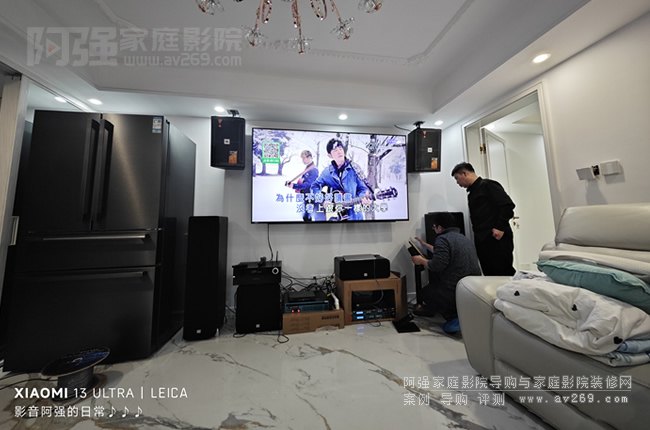 很難得搬新家特地在一個(gè)超小的客廳空間打造一套全功能影音系統(tǒng),客人早期有一套影院系統(tǒng),在裝修之初就和阿強(qiáng)協(xié)商在原有的設(shè)備里面再增加一套卡拉OK系統(tǒng)。