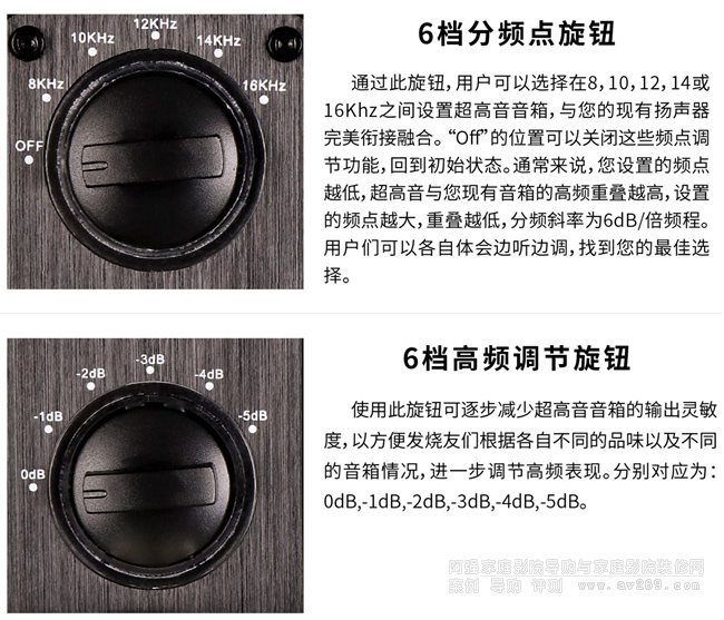 超高音就像做菜時的調味劑,直觀點說超高音是可以對高頻進行輔助作用的,增強高頻的超高頻部分的細節、密度和質感;以及增強其立體聲的聲場寬度、縱深度,對于增強補充音色比較暗淡,超高頻延伸欠佳,表現力欠佳,量感不夠的音箱有很好的補充增強作用!