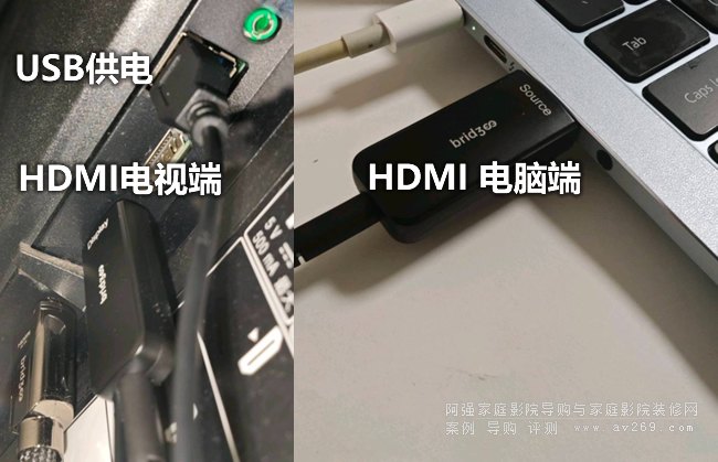 我們簡單測試一下,通過筆記本連接電視,注意電視端需要USB供電,我用的索尼電視HDMI端口附近正好有USB口我們一起插上。