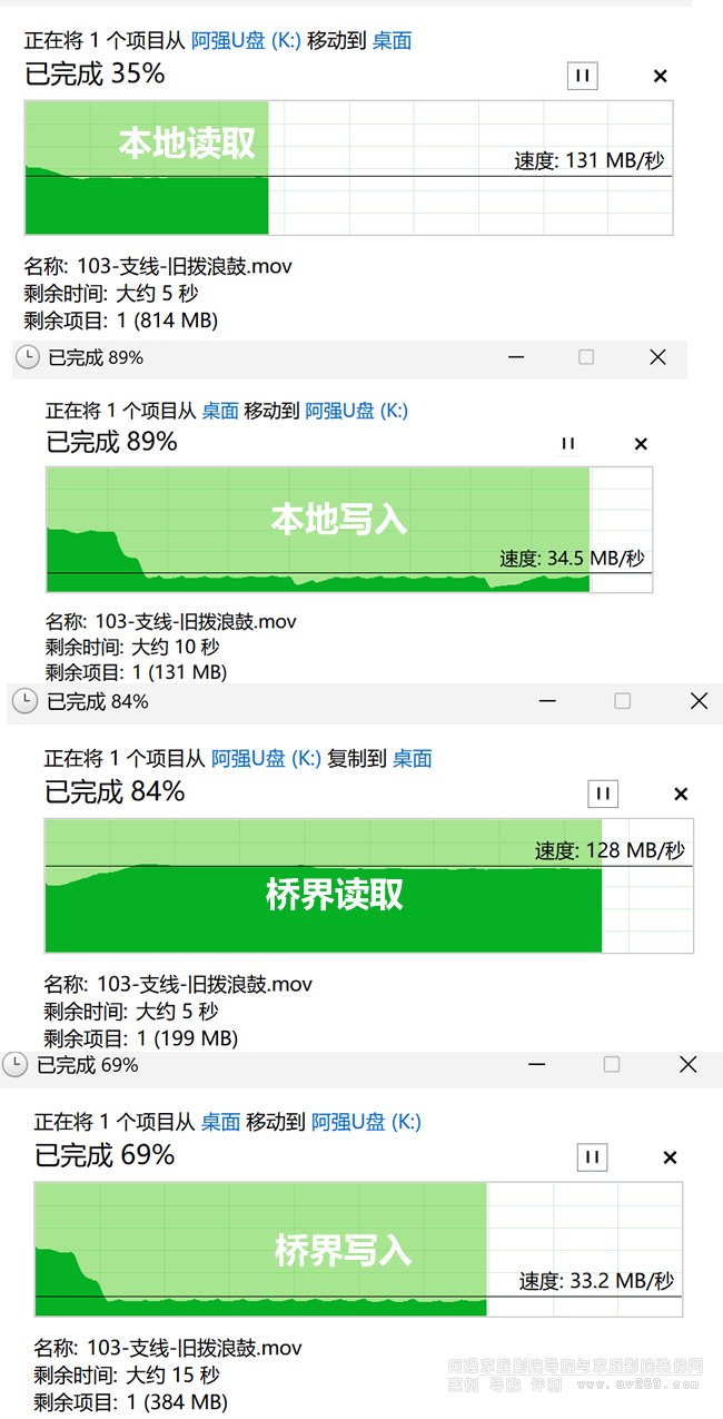 在測試HDMI視頻端口的同時阿強想到附帶有USB端口線,更換測試一下速度如何,先試試我這跟隨我N年的U盤本地互拷的速度再測試通過橋界純光MPO線U口測試后速度無變化,拷貝速度截圖在上方供參考。