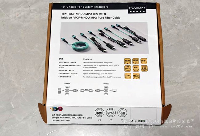 近日橋界品牌推出了一款使用MPO光纖連接器模塊的HDMI光纖線,這一變化帶來的是讓布線更簡單,穿管管徑可以更小,最重要的是可以快速不限次數更換HDMI端子,待用家適應后品牌方可推出各種檔類的HDMI端子我們是不是可以快速更換對比?不僅解決了連通問題,我們還可以在各品牌里面進行優選!而不需要更換埋在墻里的整條線材了!