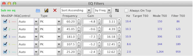 您可以通過單擊屏幕頂部附近的“EQ Filters”按鈕來查看REW計算出的過濾器設置:
