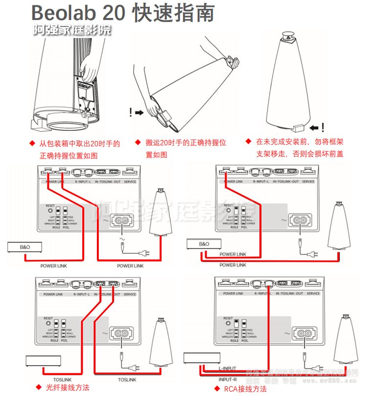 上面是Beolab20各種安裝方式的官方示意圖可供參考,且有各類指示燈協(xié)助排查,望這款時(shí)尚多功能有源音箱的出現(xiàn)給你的影音生活添彩!