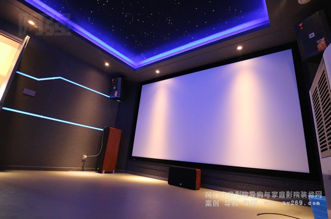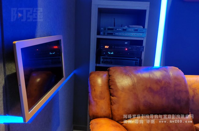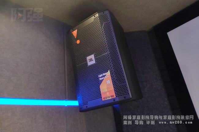 在保留業(yè)主原有設(shè)備的基礎(chǔ)上,團(tuán)隊(duì)進(jìn)行了針對(duì)性升級(jí)。視頻系統(tǒng)方面,原有愛(ài)普生投影機(jī)保留使用,更換了高增益1.3增益大尺寸投影幕布,音頻系統(tǒng)預(yù)增兩只頂置音箱,將原有7.1系統(tǒng)可無(wú)縫升級(jí)為7.1.2杜比全景聲配置,原JBL L系列音箱均外擺放置。新增的卡拉OK系統(tǒng)包含一臺(tái)專(zhuān)業(yè)人聲效果器、兩只10英寸OK音箱和OK功放,無(wú)線麥克風(fēng)及點(diǎn)歌機(jī)等設(shè)備。特別設(shè)計(jì)的設(shè)備柜采用嵌入式安裝,在后墻安置。