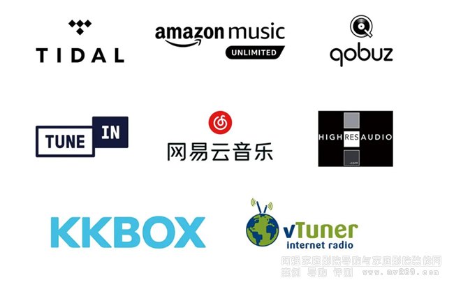 流媒體輸入:網絡共享文件夾、USB 存儲設備、USB 光驅、UPnP/DLNA媒體服務器、, Amazon Music、HighResAudio、KKBOX、Qobuz Sublime+、網易音樂、TIDAL/TIDALConnect、AirPlay、Spotify Connect、TuneIn、網絡電臺、Roon Ready ****