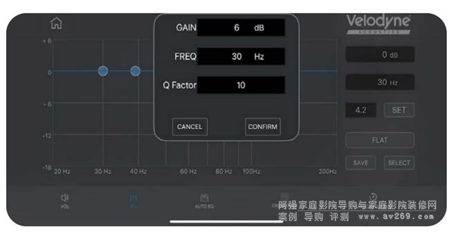 Velodyne Acoustics AutoEQ SUB 應用程序可免費用于 iOS 和安卓系統(tǒng)。它與隨附的測量麥克風配合使用,可實現(xiàn)房間自動校準,同時還能對個別參數(shù)進行靈敏的手動調(diào)整。
