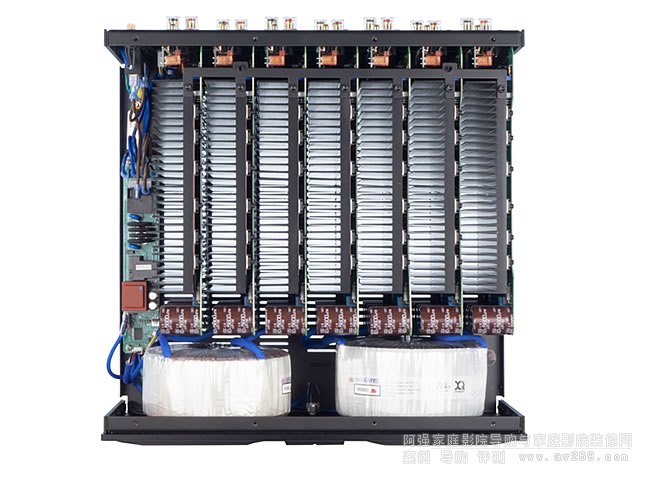 美國ATI多聲道影院后級AT1827設計簡單明了,有7 個放大通道AB類放大。AT1827放大器每通道 200 瓦至 8 歐姆,全平衡接口,高品質雙股繞組變壓器,高電流晶體管,大電源電容(每通道22,400uF)