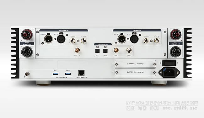 電源 全線性,2x 400VA 環形變壓器(L&R 功率放大器),2x 50W(L&R 音頻板),1x50W(CPU),1x25W(FPGA)