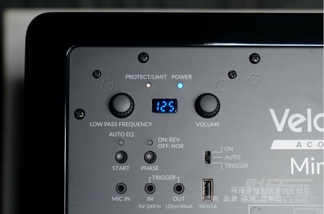 亮黑色鋼琴漆,正面的Velodyne Acoustics標(biāo)志