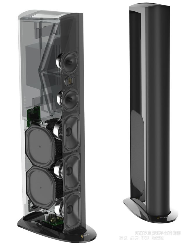 6 英寸高音/低音/中音驅動器采用低質量音圈和音錐體,與丁基橡膠環繞聲具有獨特的低質量粘合,可改善瞬態響應。用于內置有源低音炮的 6 英寸 x 10 英寸有源低頻驅動器的表面積比其他 Triton 中使用的有源驅動器多 40%。參考高速折疊帶狀高音揚聲器采用的稀土釹磁鐵材料比我們的非參考 HVFR 高音揚聲器多 50%,可改善瞬態響應并提高效率。四個慣性平衡的 10.5 ̋x 9.5 ̋ 側面安裝(每側兩個)平面背波驅動散熱器與 SuperSub X 中使用的輻射器類似,但經過重新加工以允許更大的偏移。